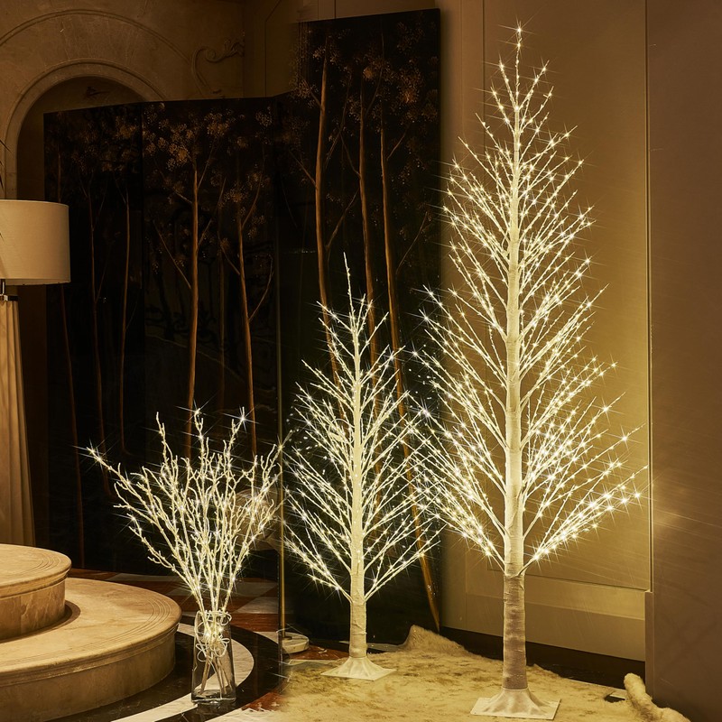 - 🎄 Easy to Assemble: White tree lights designed with K-D structure,which makes It easy to set up and storage,and each tree comes with a removable mounting base and four ground stakes so you can place it on floor or stake in the ground.