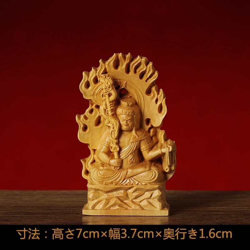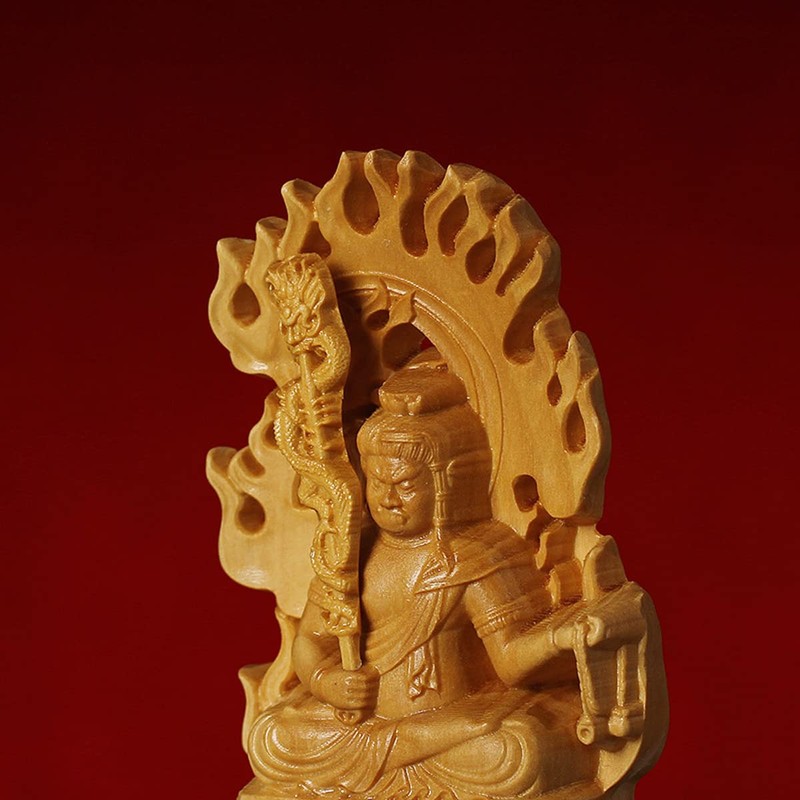 Fudo Myoo Buddha Statue, Wood Carving, High Quality Natural Boxwood Carving, Wooden Buddha Statue, Five Great Myoo Noichi, Lucky Twelve Zodiac Amulets, Prayer, Evil Protection (Height 2.8 x Width 1.5