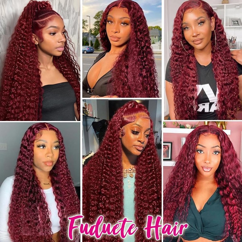 - 5.Fuduete Deep Wave Wig Suitable Occasions : 99j Burgundy 13x6 deep wave Lace Front Wig Will Make You More Charming on Various Occasions, suitable for birthday, wedding, party, graduation, gifts, cosplay or any other occasion you want. Quality Human Hair Wigs Make you more attractive and confident.and Can Also be Used as Gifts for Family and Friends