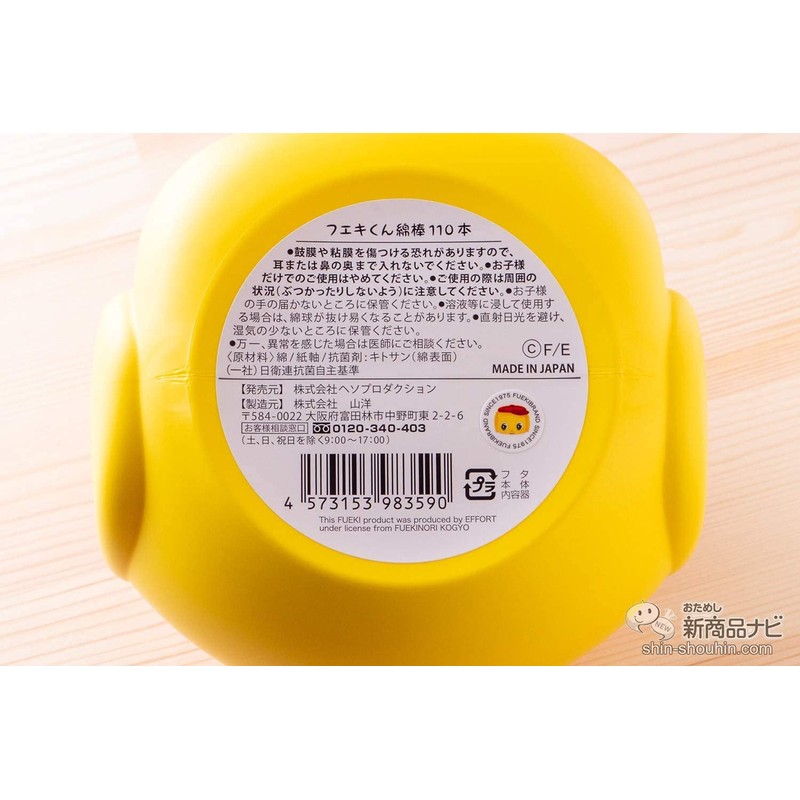 The "Fukuku-kun" has been released as a big cotton swab case. The 110 cotton swabs comes with a Fukukun message that can be used as a small bag when you are done using it. Fukui Cotton Swabs comes in a container of the familiar "Fukui Grape Glue" with a yellow face design. Fukai Grape Glue has been a cherished starch glue since its release in 1975. This container is designed for people who often remember the nostalgic memories that they used in their small age. However, this Fuui Cotton Swabs is a big size for cotton swabs. Therefore, it can be used for a variety of purposes, such as a cute accessory case and interior decoration. The cotton swabs have a red and yellow design as well as the container and the shaft of the cotton swab is "wrong" and "do not force". So you can cry occasionally..."There are 28 different types of "Fu-kun messages" printed on it, so you can enjoy it as much as you like. Container size (W x H x D): 4.5 x 3.7 x 4.9 inches (115 x 95 x 125 mm) (including hat), 110 cotton swabs.