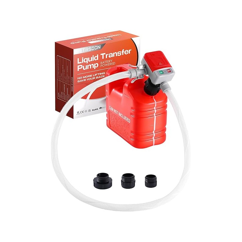 Fuel Transfer Pump Battery Powered Electric Portable Gas Can Tank Pump for Gasoline Diesel kerosene Liquid with Flexible Hose(Can Not Included)