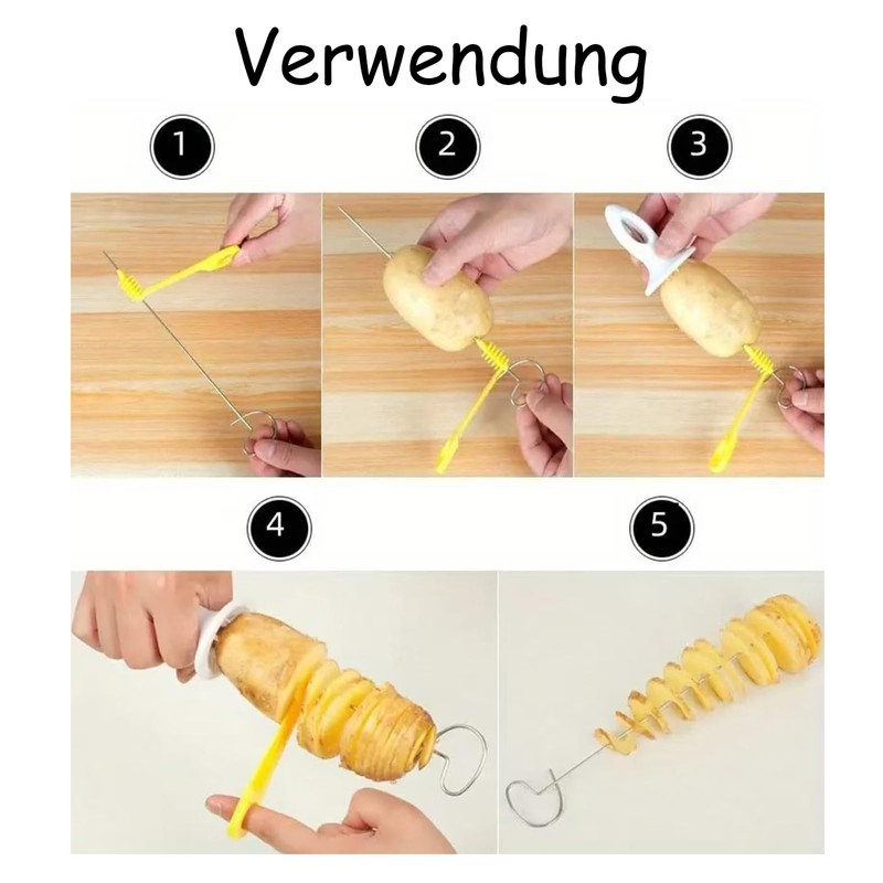 - Easy to use and versatile: with the spiral cutter vegetables, you can cut not only potatoes, but also carrots, cucumbers and zucchini into creative spiral shapes. Perfect for family dinners, barbecues or picnics.