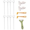 - Complete set for creative dishes: the set contains 2 potato spiral cutters, 8 skewers, 2 holders and 1 peeler. Everything you need to create delicious potato towers or vegetable spirals.