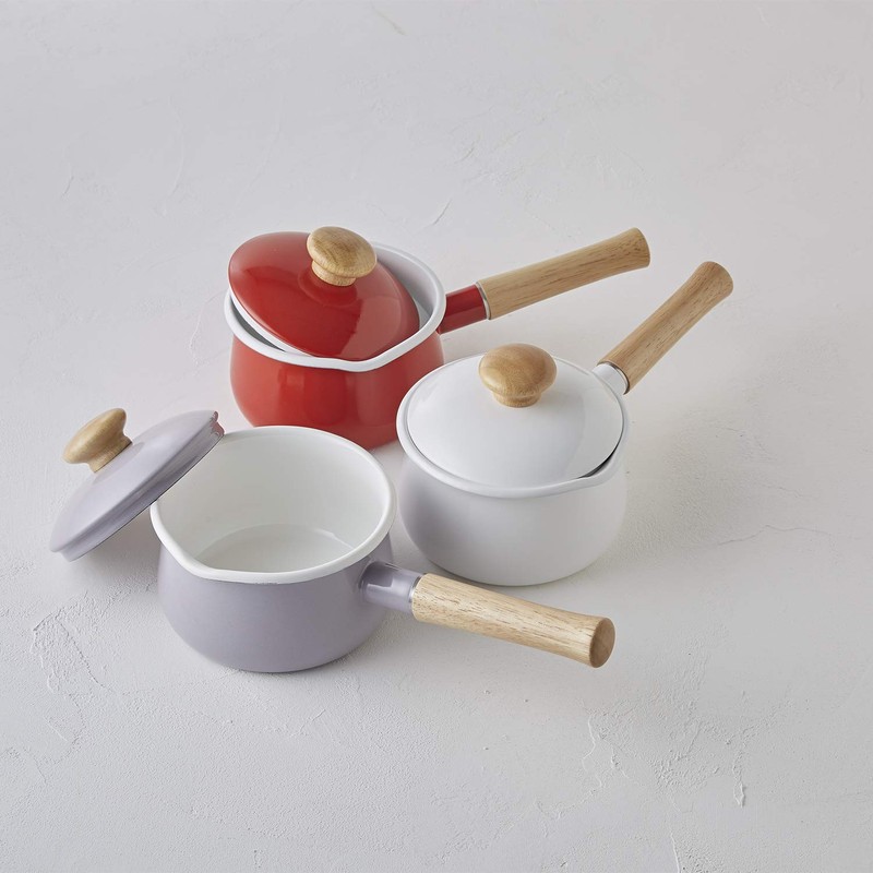 Fuji Enamel Milk Pan with Lid, 5.9 inches (15 cm), 0.4 gal (1.2 L), Induction Compatible, Purple Ash