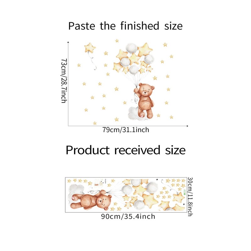 Fujitoya Wall Sticker Wall Sticker Bear Stars and Moon Clouds Scandinavian Re...
