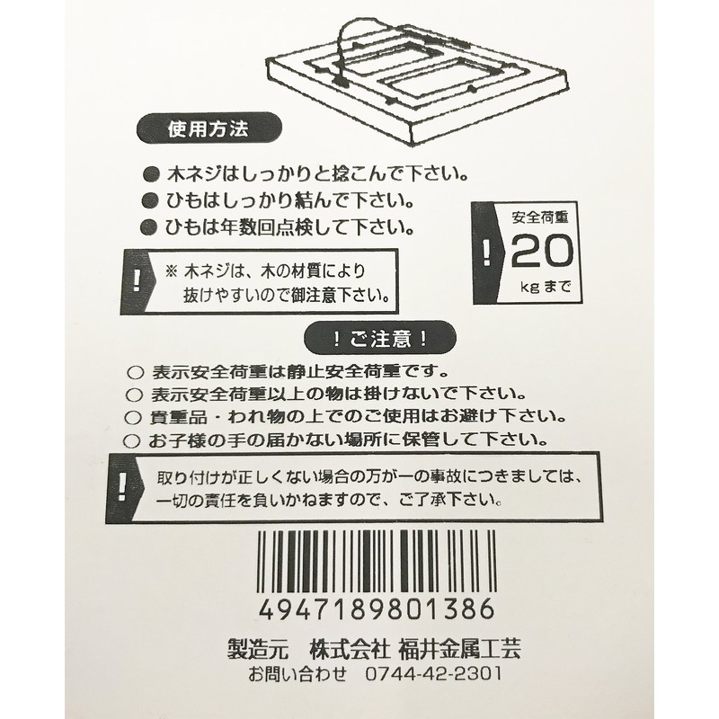 - P-shaped hanging hook (large) x 2, wood screws x 6