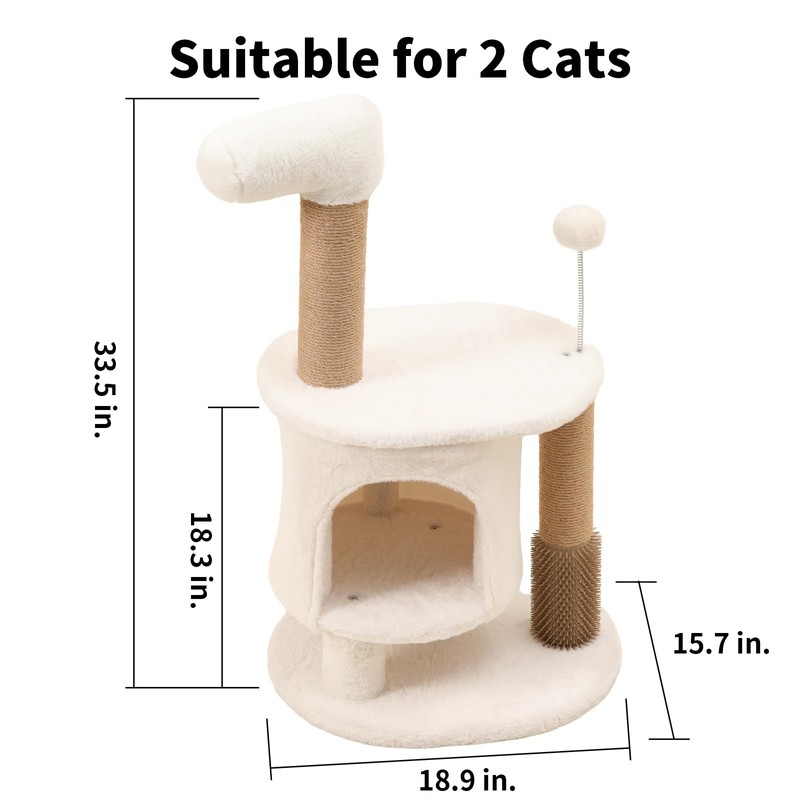 - Spacious Platform - This cat tower is located in the middle of the platform (18.3" high), ensuring that your cat has a good view from high up, providing large space (17.7" x 12.8") for it to fully extend its body and relax comfortably.