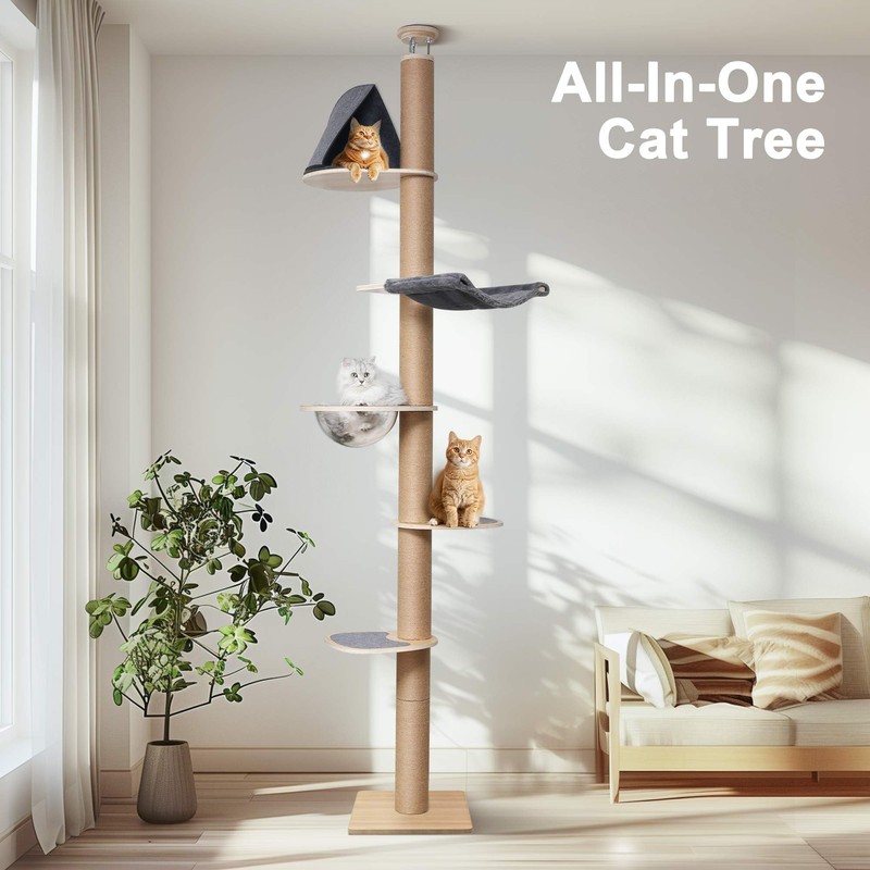 - SATISFY NATURAL INSTINCT - Cats naturally like heights, climbing to high places can burn off their excess energy and enhance their sense of security. This 6 level tall cat tree comes with ex-large soft hammock, 360°view transparent capsule, semi-enclosed cat condo and view perch. Cats can nap, scratch, and play in this cat climbing tree, one cat tree can satisfy all their needs.
