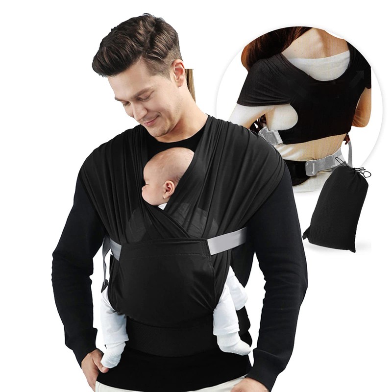Fular portabebes para bebes de 0 a 36 meses,fular para bebés de algodón 100% transpirable, fular ergonomico para bebe ajustable con manos libres,com manual de colocacion,para recién nacidos (Negro)