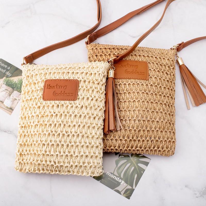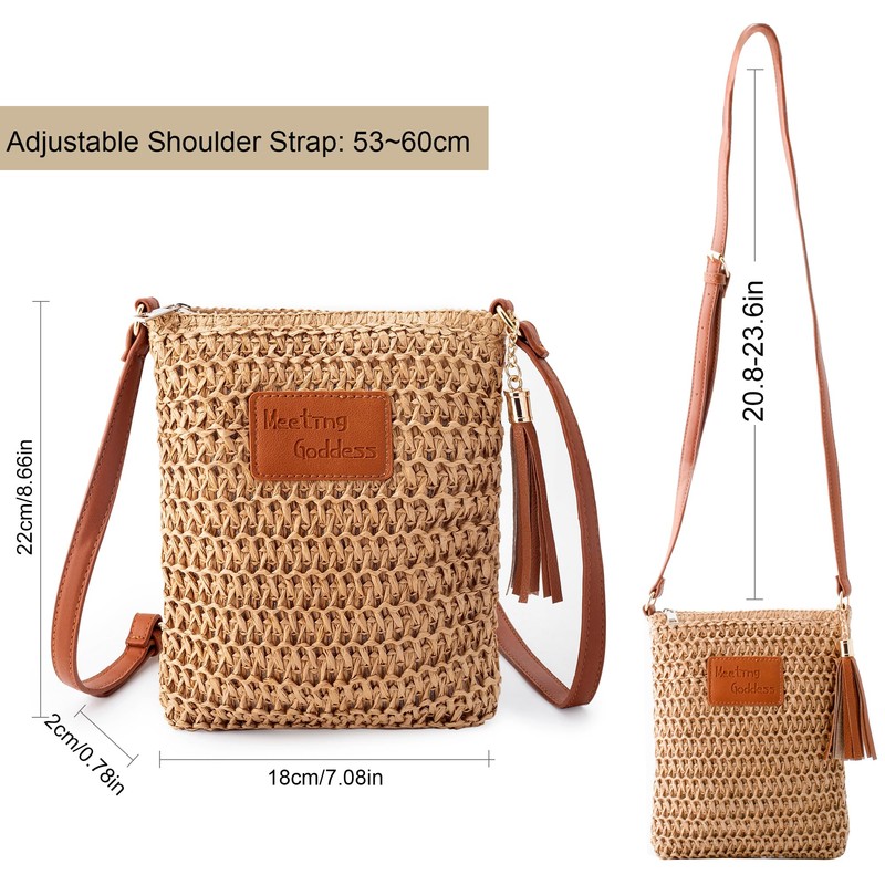 • Features a zippered main compartment that securely holds mobile phone, sunglasses, purse and daily necessities. Size of this small straw bag: 22 (H) x 18 (W) x 2 (D) cm
