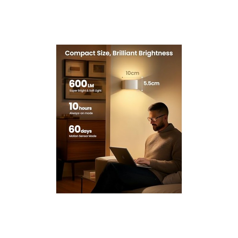 • 600LM Super Hell und Weiches Licht: Unsere wiederaufladbaren Wandlampen verwenden hochwertige Lampenperlen mit hellem und weichem Licht in drei Farbtemperaturen, die eine hohe Helligkeit von 600LM aufrechterhalten k?nnen. Das Licht flackert nicht, ist hell und gleichm??ig und schtzt die Augen.