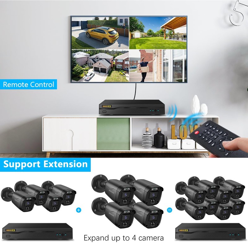 • {Super Night Vision} Embrace a new era of clarity with the OOSSXX outdoor cameras. Equipped with a high-resolution 5MP sensor and an IR cut filter, this security camera deliver unmatched visuals day and night. Enjoy a 80ft night vision range and an expansive 130° viewing angle, ensuring comprehensive coverage around the clock.