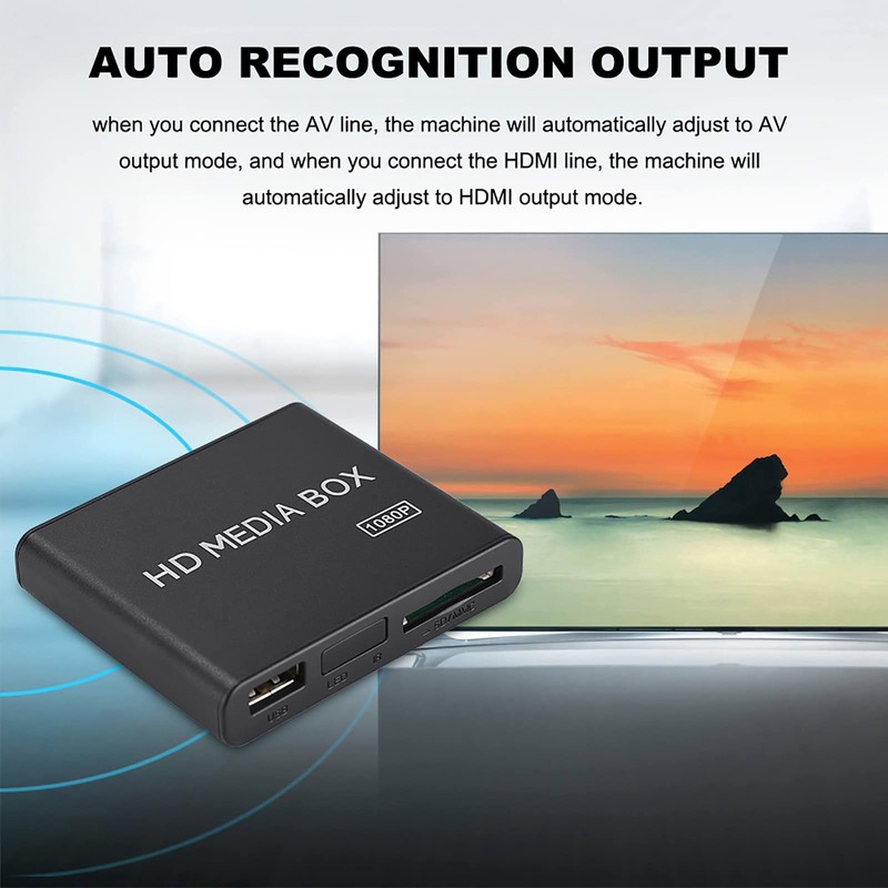 Full HD Media Player 1080P Box, Supports RMVB MP3 USB AVI MKV, Small Size, Beautiful Look, Supports Automatic Output Detection, Multiple OSD Languages (EU Plug)