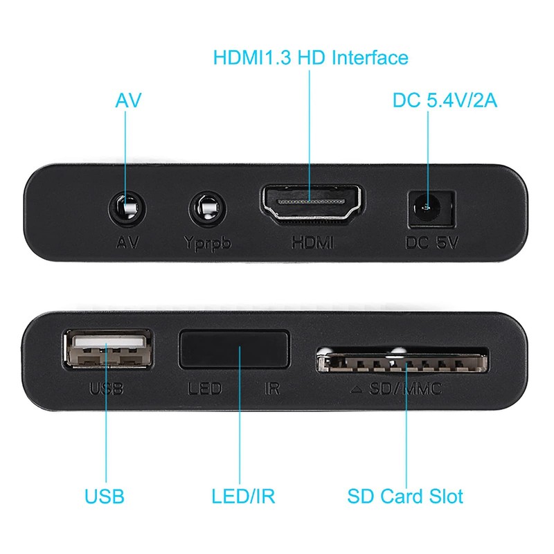 - [Multiple Video Outputs] - Media player, equipped with 1.3 interface, Yuv component video port and AV output for flexible connectivity options.