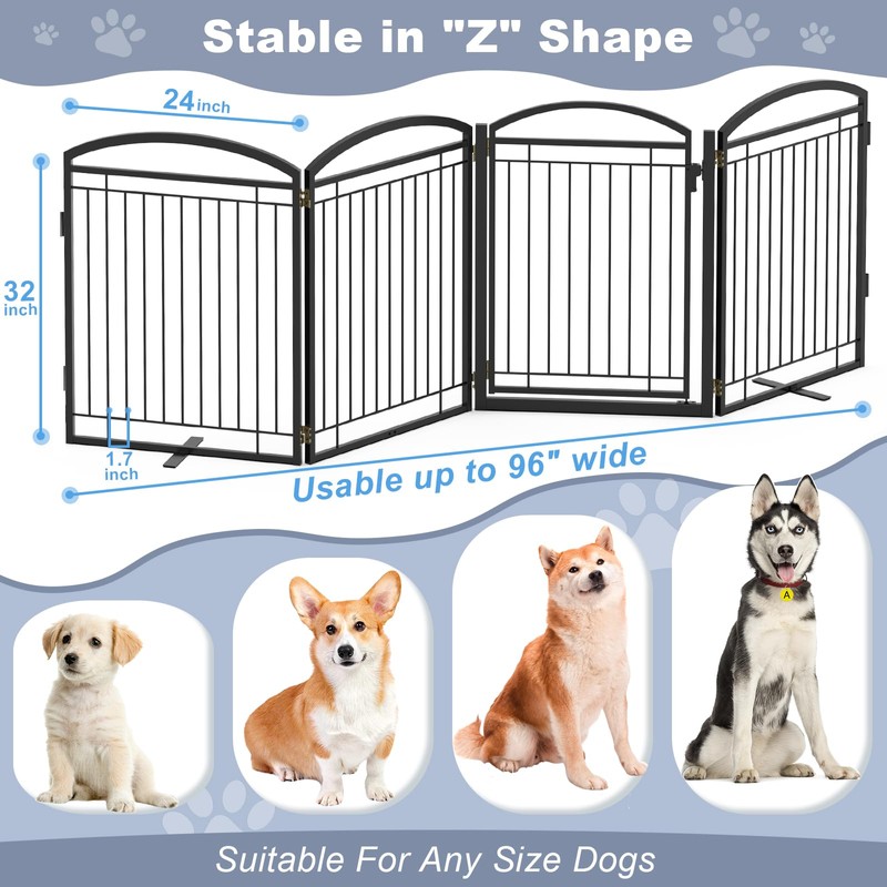 Full Metal Freestanding Dog Gates with Door,Foldable Pet Fences Outdoor&Indoor for Puppy,Extra Wide Free Standing Metal Wire Tall Dog Gate for Openings,Doorways,Stairs,Porch,Decks,Yard(4 Panels Black)
