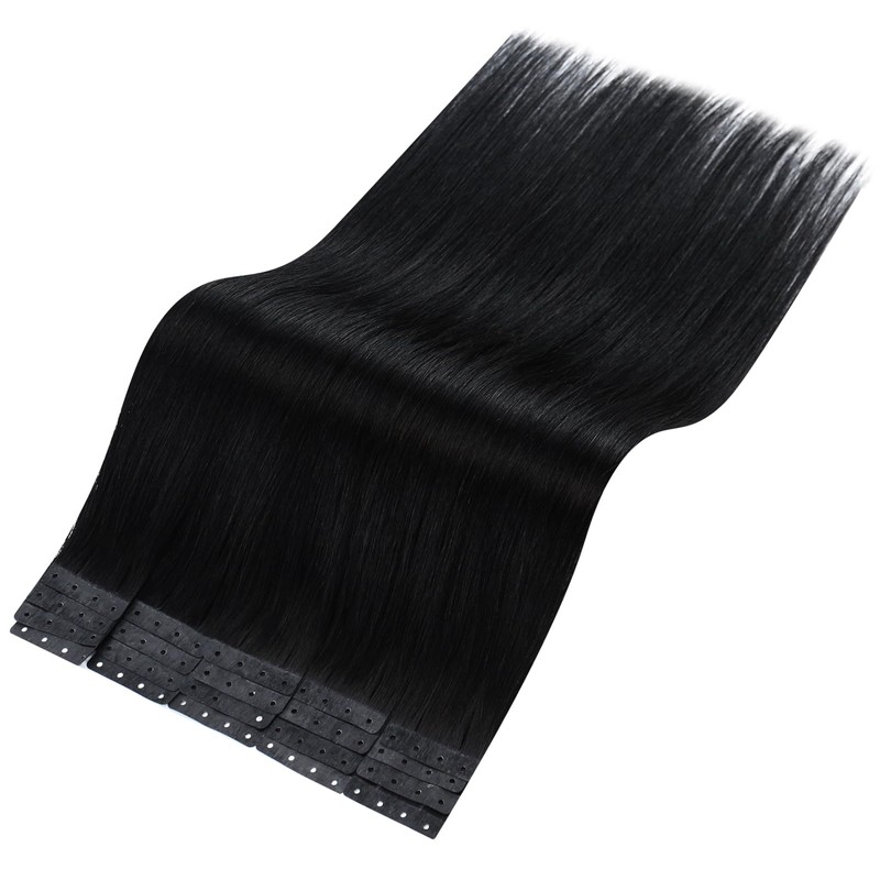Full Shine Invisible Tape in Hair Extensions Human Hair Holed Tape in Extensions Color 1 Black 18Inch 20PCS Black Tape in Extensions Real Human Hair 50G Straight Seamless Glueless Soft Remy