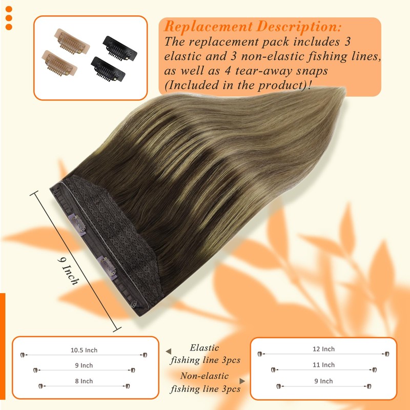 - Long Life:There are 6 replacement fishing lines,including 3 different sizes of elastic and non-elastic fishing lines,to ensure that the needs of customers with different head sizes are met,while prolonging the life of the hair extensions