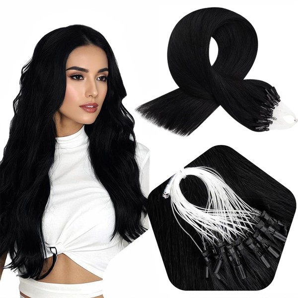 Full Shine Pre-bonded Hair Extensions Micro Loop Human Hair Extensions Beads 20 Inch Color 1 Jet Black Fish Line Beads Cold Fusion Micro Link