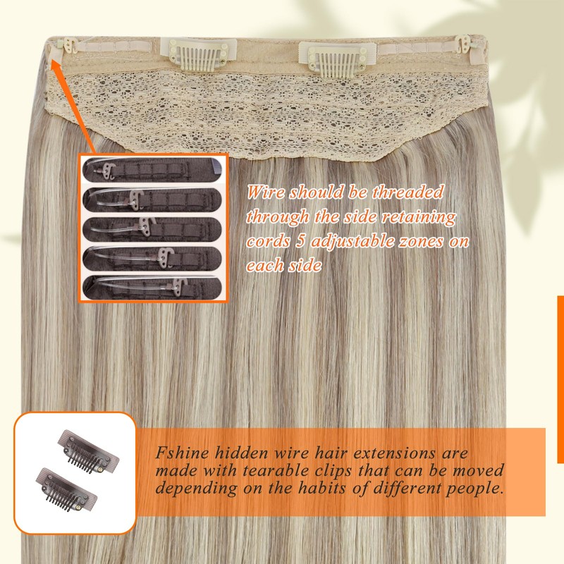 - Easy Installation: The Wire Hair Extensions are Easier to Install and Remove; It Can Be Put on in Less Than 1 Minute Without Glue or Tapes; Clear Fish Line Gives Your Hairstyle a Natural, Invisible Look