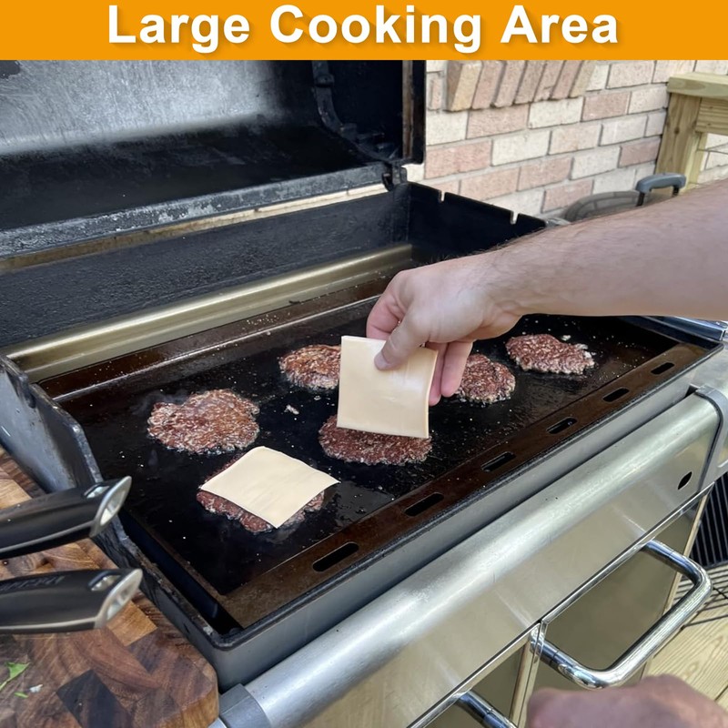 - From Grill to Griddle: Measuring approximately 25.2" x 19.3" x 1.3" , the extra-large cooking area is perfect for cooking several dishes at the same time. Make crispy burgers, bacon, eggs, fajitas and stir-fries by simply removing your existing grill and placing the griddle on top