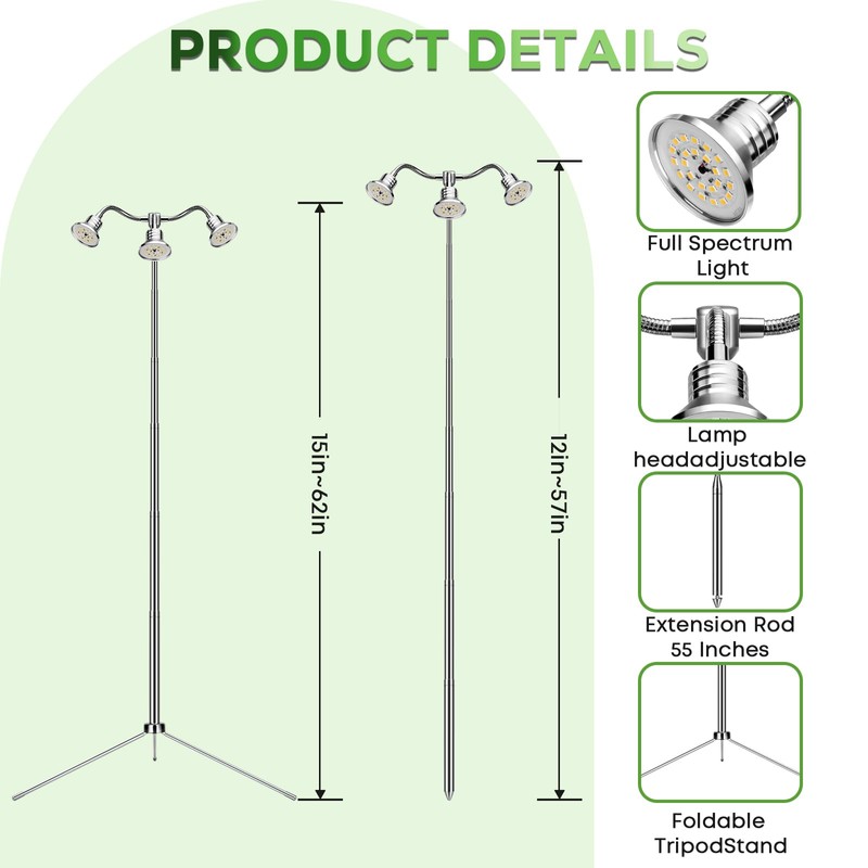 - Fits Plants of All Sizes: Easily extend from compact 15" to generous 62" to illuminate tiny seedlings or towering mature plants. One light effortlessly adapts to your greenery's evolving needs.
