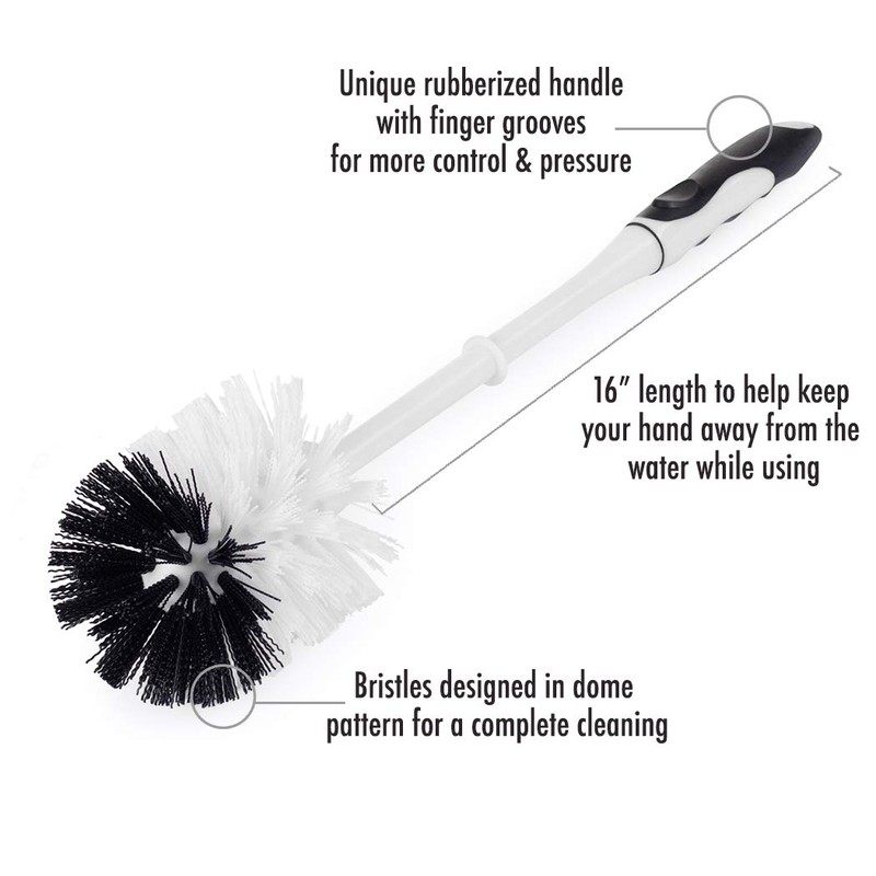 - PREMIUM TOILET BOWL BRUSH: Designed with extra heavy duty bristles to last longer than other bowl brushes. Bristles cover entire area of brush head and are tufted in a dome pattern for a complete and thorough brushing with the least effort. Wavy pattern of bristles is more compact than other brushes to carry more cleaner above the water line and under the rim.