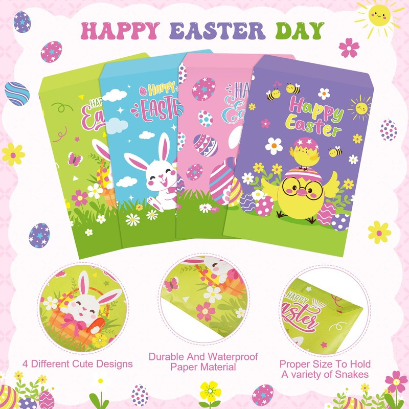 - Easter Theme Design: our Easter goodies bag is printed with adorable Easter elements like colorful eggs, cute bunnies, "Happy Easter" letters, etc., The charming designs add a festive touch, making them suitable for your Easter celebrations