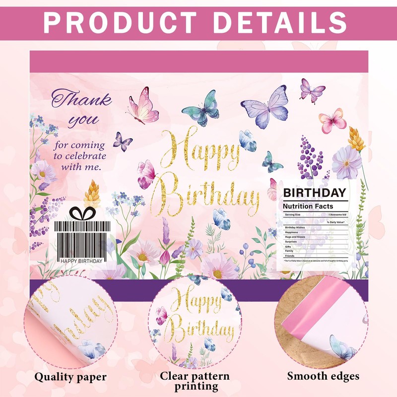 • Wide Application: you can use butterfly birthday chip bags at butterfly theme birthday parties, baby showers or butterfly theme girl parties, as snack packaging bags, or as party decorations to add charm to your celebrations