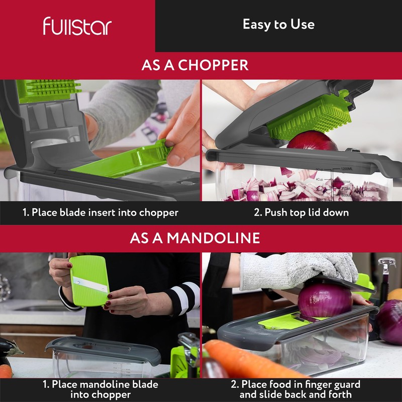 - A Kitchen Essential - Whether you're a novice cook or a seasoned pro, the Fullstar Food Chopper is a must-have in any kitchen. It's versatile, easy to use, and backed by our satisfaction promise. Please read the instruction manual provided with the Fullstar food chopper closely before use.