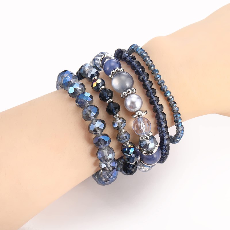 FULU AUTUMN Boho Beaded Bracelet Multi-Layer Crystal Stone Beaded Bracelets for Women Stretch Bracelets Fashion Jewellery Birthday Gifts for Her(21-Blue)