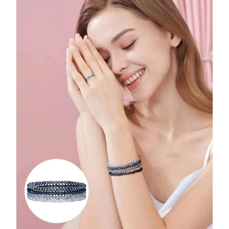 - About bracelet pack: The stackable bracelet features a variety of colored crystal beads threaded with elastic rope. The four bracelets of the same color system are combined together, making the bracelet set stylish and elegant at the same time more layered. Elastic rope make bracelet sizes more tolerant