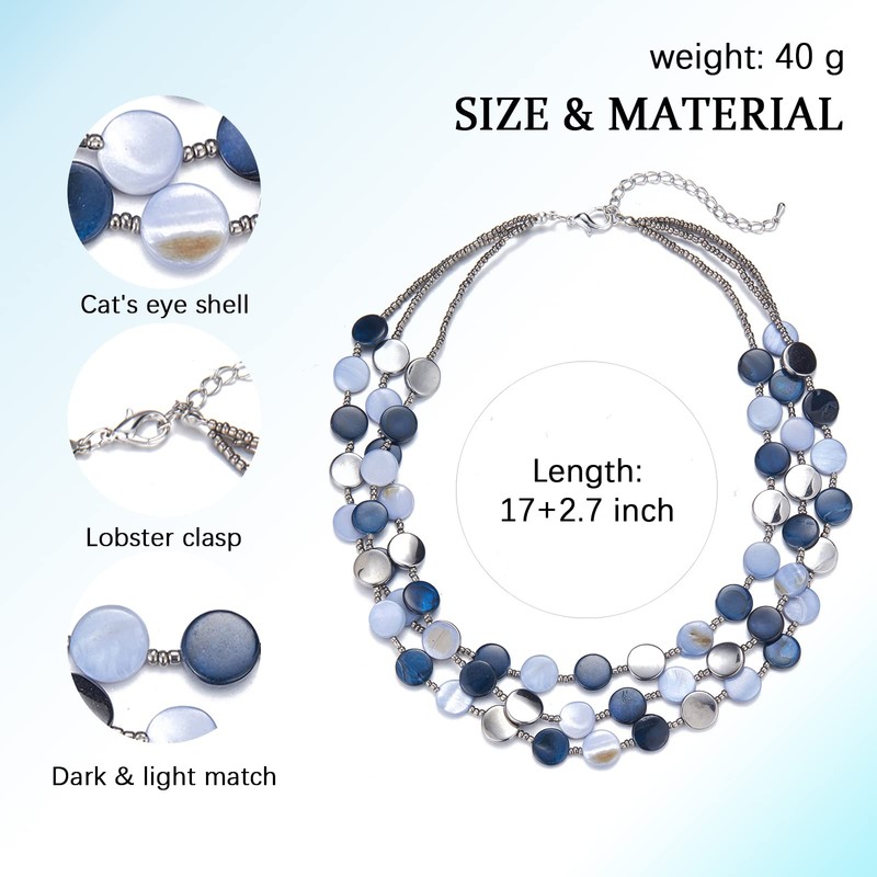 - High-quality material: the pearl necklace is mainly made of two shades of shell and alloy, through the process of polishing and polishing, the shell is smooth and round, comfortable to touch
