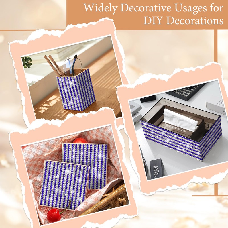 - How to Use:This Royal Blue Diamond Ribbon Comes with Self Adhesive Design,Which Can Make You Easier to DIY.You Can Cut The Length You Need,Remove The Protective Paper from The Back,Paste The Sticker on The Items You Want to Decorate,And Press for A While to Make It Firm.Please Note:Don't Make The Gem Ribbon Roll Sticker Touch The Water within 24 Hours after Pasting