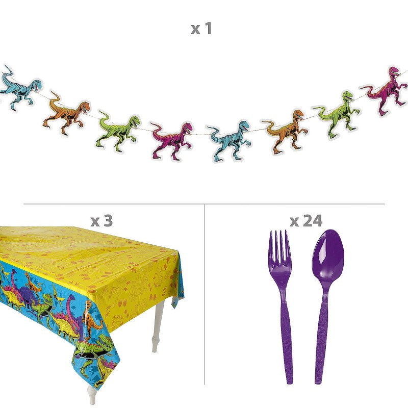 Fun Express 164 Pc. Bright Dino Party Disposable Tableware Kit for 24 Guests