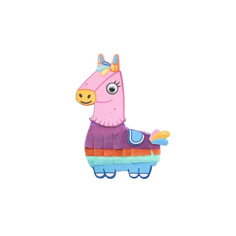 • FIESTA THEME: This craft kit features a llama-shaped piñata with striped colors on the body, ears and tail and a bright pink head with googly eyes.