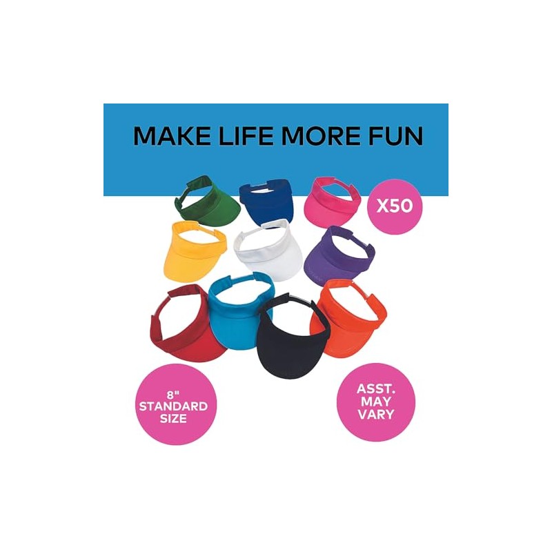 Fun Express - 50pc Visor Asst. - Apparel Accessories - Hats - Visors - 50 Pieces Multicolor