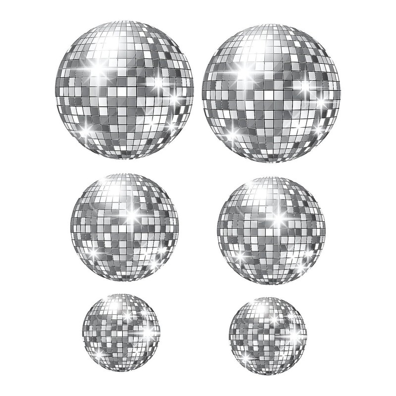 - SPARKLY CUTOUTS: These bright cutouts feature a disco ball image in three different sizes to add some sparkle to party decorations.