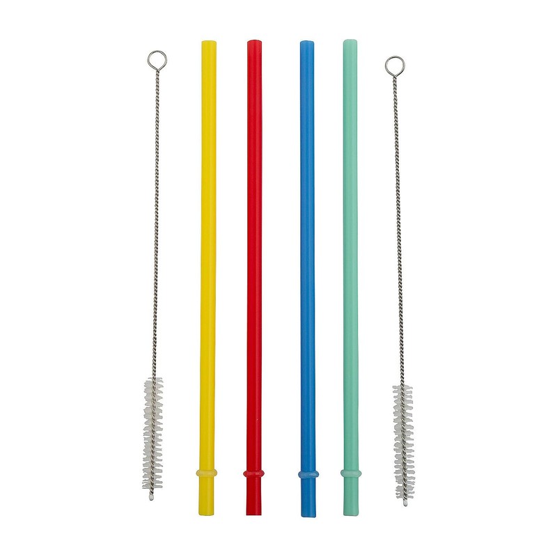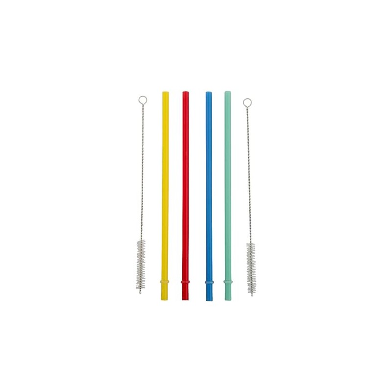 Fun Express 9" Reusable Plastic Straws with Cleaner Brush – 26 Pieces