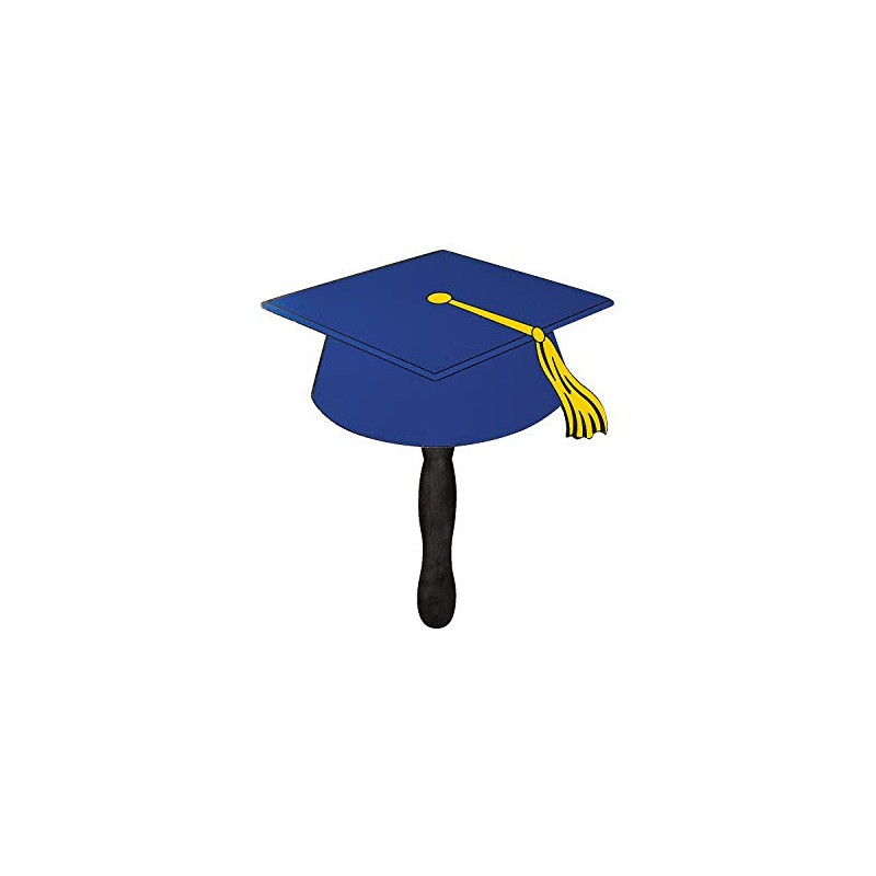 - It's hot in those caps and gowns — pass out these cardboard graduation cap-shaped fans to all your classmates! You can even use these as party favors by simply including with other graduation goodies. Graduation cap fans will surely make your guests happy and keep them cool throughout the party. Each 9" cardboard fan is on a 5" plastic handle. Simple assembly required.