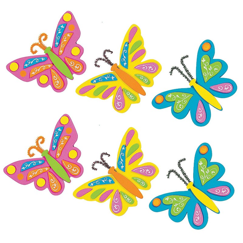 • Material: Colorful foam butterflies include self-adhesive foam pieces, chenille stem antennae, and a self-adhesive magnet to display your delicate creation from any metal surface