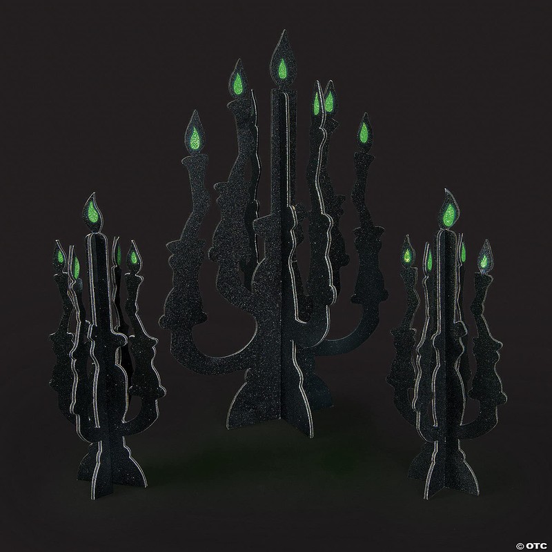 Fun Express Candelabra Centerpiece with Glow in The Dark Flames for Halloween - 3 Piece Set - Party Decor