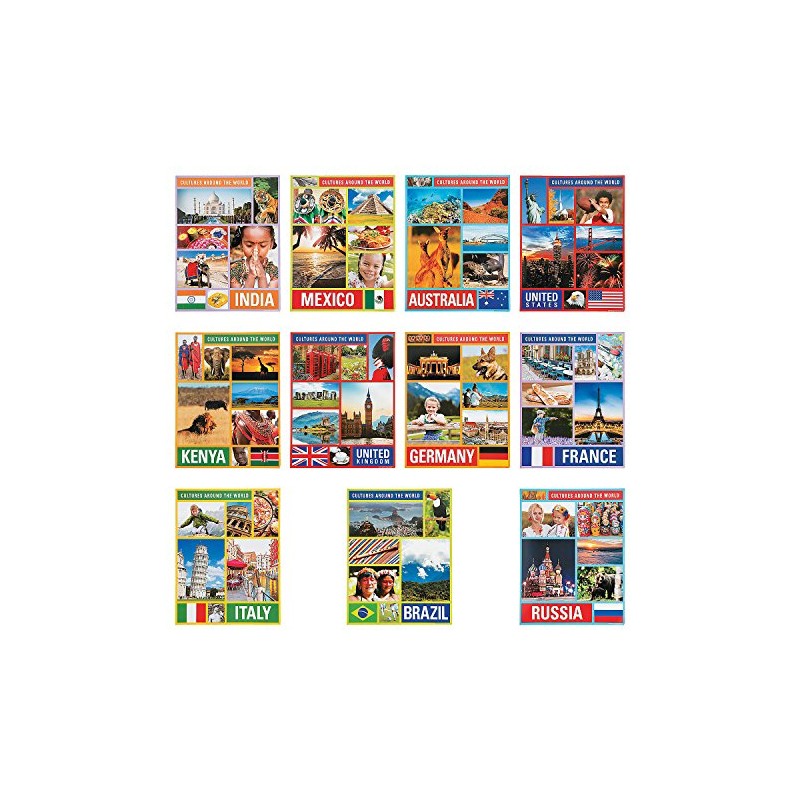 Fun Express Cultures Around The World Learning Chart - 12 Pieces - Diversity and Multicultural Educational and Classroom Decor