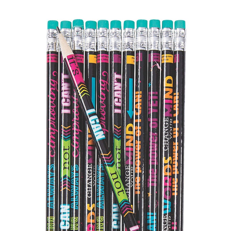 - Featuring bright encouraging words on a black background these pencils are fun as giveaways party favors and prizes