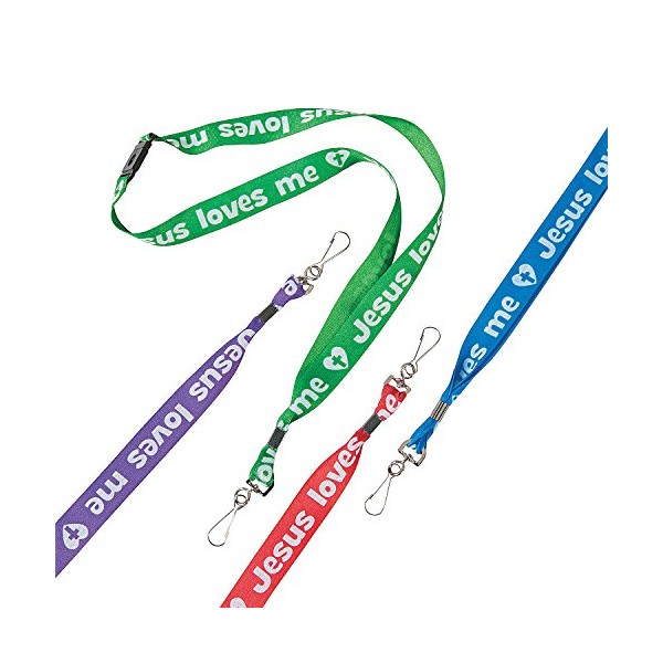 Fun Express - I Love Jesus Lanyard for Christmas - Jewelry - Necklaces - Badge Holders - Christmas - 12 Pieces