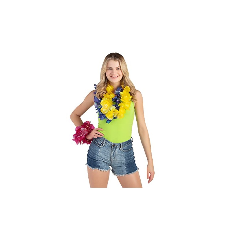 - Your Hawaiian luau themed party gets some sparkle when you add these leis to your party favors. The assorted shimmering colors are an enjoyable addition to your luau supplies. Of all the lei selections available, the iridescent plastic petals on these leis are a unique option that will thrill your guests. Plastic. 42" circ. x 5"