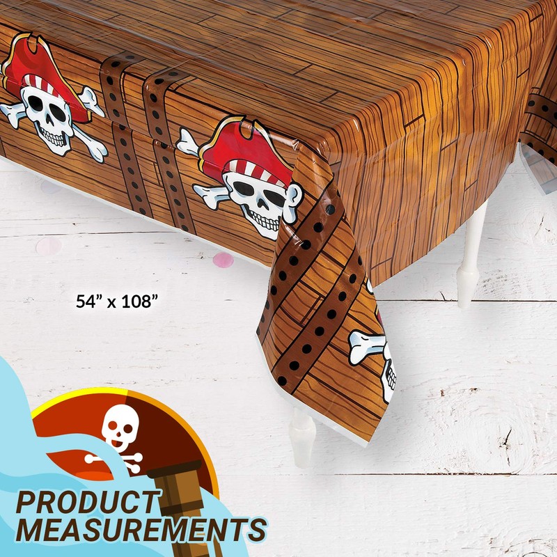 - Featuring a wood plank design with skull & crossbones, it will perfectly coordinate with the rest of your pirate picks and is sure to turn any space into a swashbuckling soirée. Shiver me timbers - let the celebration begin!