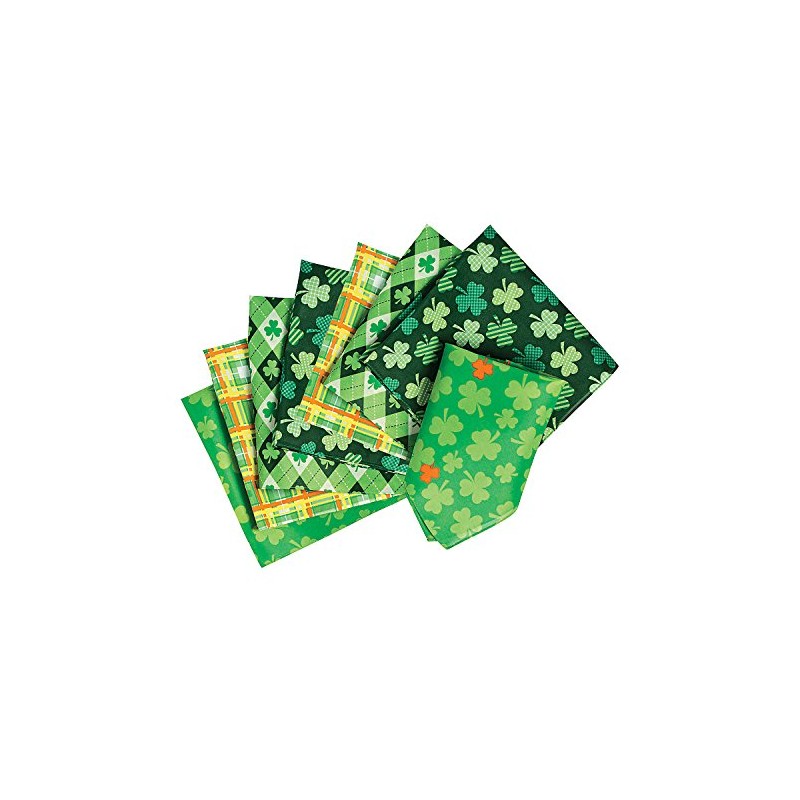 Fun Express St Patricks Day Bandanas - 12 Bandanas of Assorted Shamrock Designs
