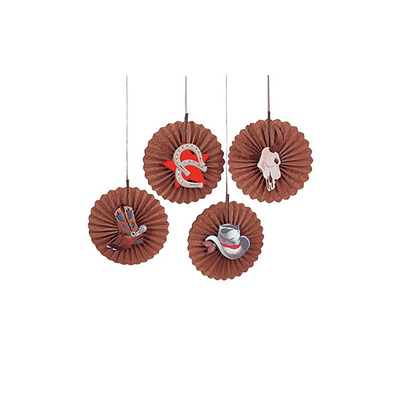 - Square dance or barn burner, these Western Party Hanging Fans are a great way to give your ranch a burst of Wild West fun. You're sure to lasso in a stampede of smiles no matter if you're decorating for a rodeo party, VBS theme, Western birthday party or rustic wedding. These paper hanging fan burst decorations include four fun designs including cowboy boots, horseshoes, cowboy hat and steer skull. 12" OTC