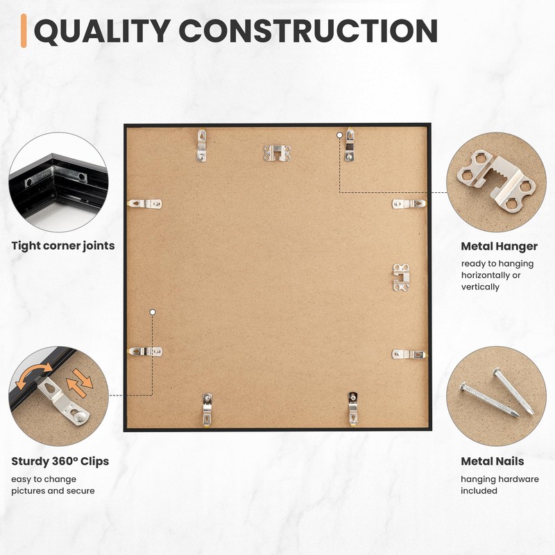 • A Thoughtful Gift: This black 16x16 picture frame features a simple design that fits seamlessly into any space or theme. Whether in the bedroom, living room, office, kitchen, gallery, or foyer, these frames add a warm, inviting touch. These picture frames also make a thoughtful gift for birthdays, weddings, Valentine’s Day, Christmas, Thanksgiving, and other special occasions.