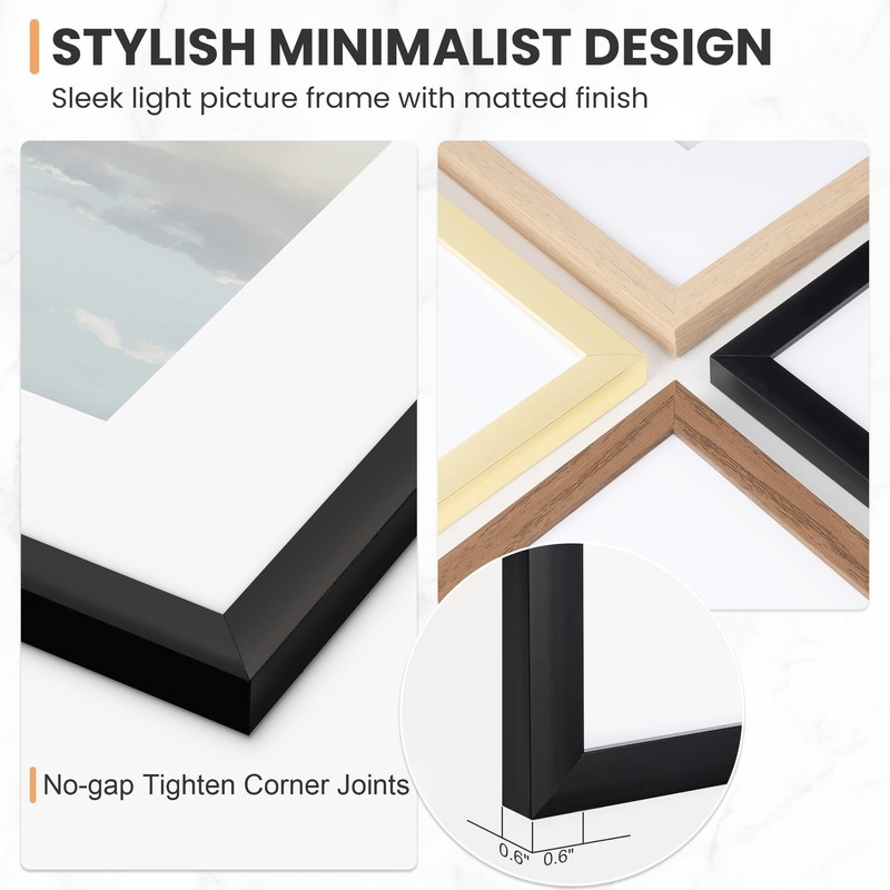 • 16x16 Frame for Home Decor: This 16x16 picture frame is expertly crafted from high-quality plastic material, ensuring durability and protection for your cherished memories. The slim design of the 16x16 frame blends seamlessly into any interior decor, adding a touch of modern style. Its clean lines and sleek look make it a perfect choice for those who prefer a stylish yet understated display.
